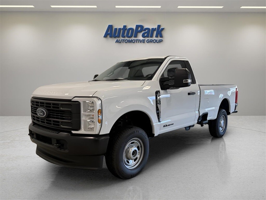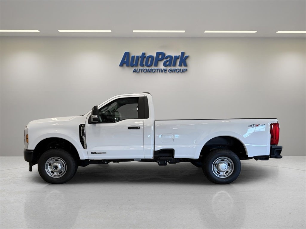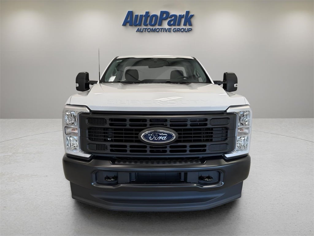 Vehicle Is Equipped With Ford Connectivity Package (1-Year Included), GVWR: 10,000 lb Payload Package, Internet access capable: 5G Modem - Ford Connectivity Package, Power Stroke 6.7L V8 DI 32V OHV Turbodiesel, 4WD, Oxford White, MEDIUM DARK SLATE, ABS brakes, Compass, Electronic Stability Control, Heated door mirrors, Illuminated entry, Low tire pressure warning, Remote keyless entry, Traction control, 17" Argent Painted Steel Wheels, 3.73 Axle Ratio, 4 Speakers, 4-Wheel Disc Brakes, Air Conditioning, AM/FM radio, AM/FM Stereo w/MP3 Player, Brake assist, Delay-off headlights, Dual front impact airbags, Dual front side impact airbags, Emergency communication system: SYNC 4 911 Assist, Exterior Parking Camera Rear, Front anti-roll bar, Front Center Armrest w/Storage, Front reading lights, Fully automatic headlights, HD Vinyl 40/20/40 Split Bench Seat, Outside temperature display, Overhead airbag, Overhead console, Panic alarm, Passenger cancellable airbag, Passenger vanity mirror, Power door mirrors, Power steering, Power windows, Rear step bumper, Security system, Speed control, Steering wheel mounted audio controls, SYNC 4, Tachometer, Telescoping steering wheel, Tilt steering wheel, Trip computer, Turn signal indicator mirrors, and Variably intermittent wipers.