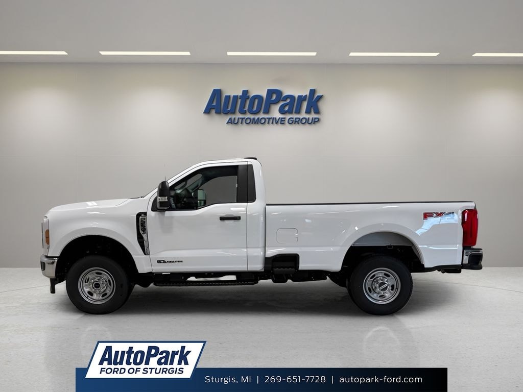 Vehicle Is Equipped With FX4 Off-Road Package (Hill Descent Control, Off-Road Specifically Tuned Shock Absorbers, and Unique FX4 Off-Road Box Decal), Ford Connectivity Package (1-Year Included), GVWR: 10,000 lb Payload Package, Internet access capable: 5G Modem - Ford Connectivity Package, Power Stroke 6.7L V8 DI 32V OHV Turbodiesel, 4WD, ABS brakes, Compass, Electronic Stability Control, Heated door mirrors, Illuminated entry, Low tire pressure warning, Remote keyless entry, Traction control, 17" Argent Painted Steel Wheels, 3.73 Axle Ratio, 4 Speakers, 4-Wheel Disc Brakes, Air Conditioning, AM/FM radio, AM/FM Stereo w/MP3 Player, Brake assist, Delay-off headlights, Dual front impact airbags, Dual front side impact airbags, Emergency communication system: SYNC 4 911 Assist, Exterior Parking Camera Rear, Front anti-roll bar, Front Center Armrest w/Storage, Front reading lights, Fully automatic headlights, HD Vinyl 40/20/40 Split Bench Seat, Outside temperature display, Overhead airbag, Overhead console, Panic alarm, Passenger cancellable airbag, Passenger vanity mirror, Power door mirrors, Power steering, Power windows, Rear step bumper, Security system, Speed control, Steering wheel mounted audio controls, SYNC 4, Tachometer, Telescoping steering wheel, Tilt steering wheel, Trip computer, Turn signal indicator mirrors, and Variably intermittent wipers.