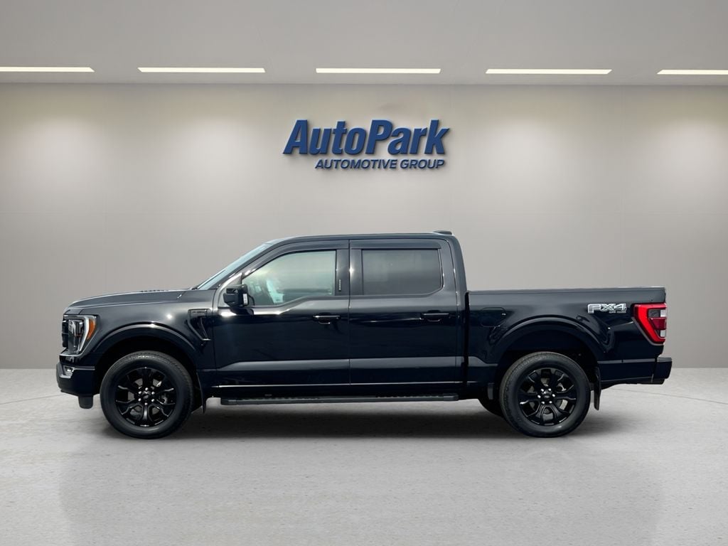 Vehicle Is Equipped With Equipment Group 502A High (2nd Row Heated Seats, LED Projector w/Dynamic Bending Headlamps, Power Tilt/Telescoping Steering Column w/Memory, Rain-Sensing Wipers, and Wireless Charging Pad), Ford Co-Pilot360 Assist 2.0 (Connected Built-In Navigation, Evasive Steering Assist, Intelligent Adaptive Cruise Control w/Stop & Go, Intersection Assist, and Speed Sign Recognition), FX4 Off-Road Package (4x4 FX4 Off-Road Bodyside Decal, Hill Descent Control, Monotube Rear Shocks, Off-Road Tuned Front Shock Absorbers, and Rock Crawl Mode), GVWR: 7,050 lbs Payload Package, Lariat Black Appearance Package (Black 6" Angular Step Bars, Black Exterior Badging, Black Taillamp Bezels, Dark Interior Appliques, Leather-Trimmed Bucket Seats, Matte Black Tailgate F-150 Decal, Unique Hood & Grille w/Black Accent, and Wheels: 20" Gloss Black Painted Aluminum), Lariat Sport Appearance Package (Accent-Color Angular Step Bars, Body-Color Front & Rear Bumpers, Box Side Decals, Chrome Single-Tip Exhaust, and Dark 2-Bar & 1 Minor Bar Style Grille), Trailer Tow Package (Class IV Trailer Hitch Receiver, Integrated Trailer Brake Controller, and Pro Trailer Backup Assist & Pro Trailer Hitch Assist), F-150 Lariat, 4D SuperCrew, 3.5L V6 EcoBoost, 10-Speed Automatic, 4WD, Agate Black Metallic, Black w/Leather Trim Seats w/Heated 2nd Row, Navigation system: Connected Navigation, 360 Degree Camera, 4-Wheel Disc Brakes, 8 Speakers, ABS brakes, Adjustable pedals, Air Conditioning, AM/FM radio: SiriusXM with 360L, Auto High-beam Headlights, Auto Start-Stop Removal (DISC), Auto-dimming door mirrors, Auto-dimming Rear-View mirror, Automatic temperature control, Brake assist, Bumpers: chrome, Center High-Mounted Stop Lamp CHMSL Camera Removal, Compass, Delay-off headlights, Driver door bin, Driver vanity mirror, Dual front impact airbags, Dual front side impact airbags, Electronic Locking w/3.31 Axle Ratio, Electronic Stability Control, Emergency communication system: SYNC 4 911 Assist, Extended Range 36 Gallon Fuel Tank, Exterior P