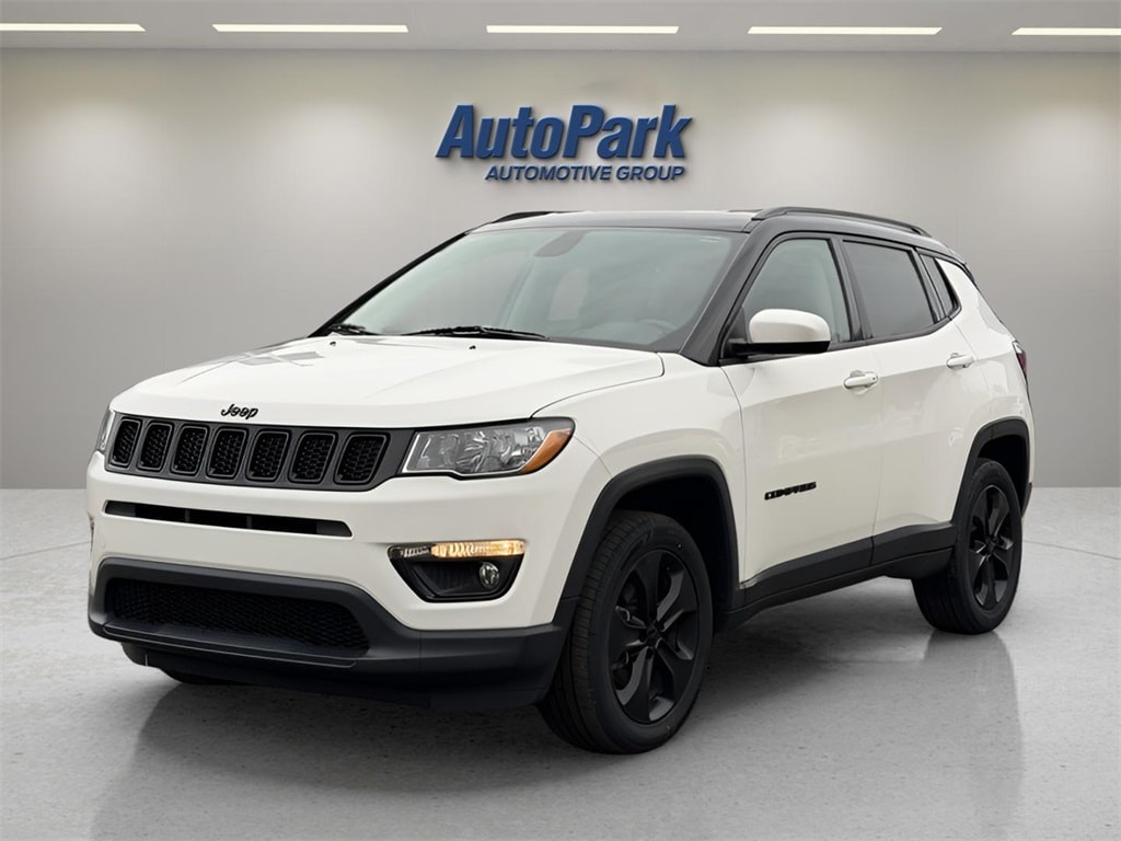 Vehicle Is Equipped With Cold Weather Group (All-Season Floor Mats, Heated Front Seats, Heated Steering Wheel, Reversible Carpet/Vinyl Cargo Mat, and Windshield Wiper De-Icer), Quick Order Package 2GB Altitude (Altitude Special Edition, Black 4x4 Tailgate Badge, Black Day Light Opening Moldings, Black Grille w/Black Rings, Black Roof, Bright Exhaust Tip, Gloss Black Compass Badge, Gloss Black Fog Lamp Bezels, Gloss Black Jeep Badge, Gloss Black Lower Rear Fascia Valance, Piano Black Interior Accents, and Wheels: 18" x 7.0" Black Aluminum), Compass Altitude, 4D Sport Utility, 2.4L I4, 9-Speed 948TE Automatic, 4WD, White Clearcoat, Black w/Cloth Low-Back Bucket Seats, 3.833 Axle Ratio, 4-Wheel Disc Brakes, 6 Speakers, ABS brakes, Air Conditioning, Alloy wheels, AM/FM radio: SiriusXM, Anti-whiplash front head restraints, Apple CarPlay, Apple CarPlay/Android Auto, Automatic temperature control, Bluetooth® Streaming Audio, Brake assist, Bumpers: body-color, Compass, Delay-off headlights, Driver door bin, Driver vanity mirror, Dual front impact airbags, Dual front side impact airbags, Electronic Stability Control, Four wheel independent suspension, Front anti-roll bar, Front Bucket Seats, Front Center Armrest w/Storage, Front dual zone A/C, Front fog lights, Front License Plate Bracket, Front reading lights, Fully automatic headlights, Google Android Auto, GPS Antenna Input, Heated door mirrors, Illuminated entry, Knee airbag, Low tire pressure warning, Media Hub (USB, AUX), Occupant sensing airbag, Outside temperature display, Overhead airbag, Overhead console, Panic alarm, ParkView Rear Back-Up Camera, Passenger door bin, Passenger vanity mirror, Power door mirrors, Power steering, Power windows, Premium Cloth/Vinyl Bucket Seats, Radio: Uconnect 4 w/7" Display, Rear anti-roll bar, Rear seat center armrest, Rear window defroster, Rear window wiper, Remote keyless entry, Roof rack: rails only, Speed control, Split folding rear seat, Spoiler, Steering wheel mounted audio controls, Tachometer, Telescoping steering wheel, Tilt steering wheel, Traction control, Trip computer, USB Host Flip, Variably intermittent wipers, and Wheels: 17" x 7.0" Silver Painted Aluminum.